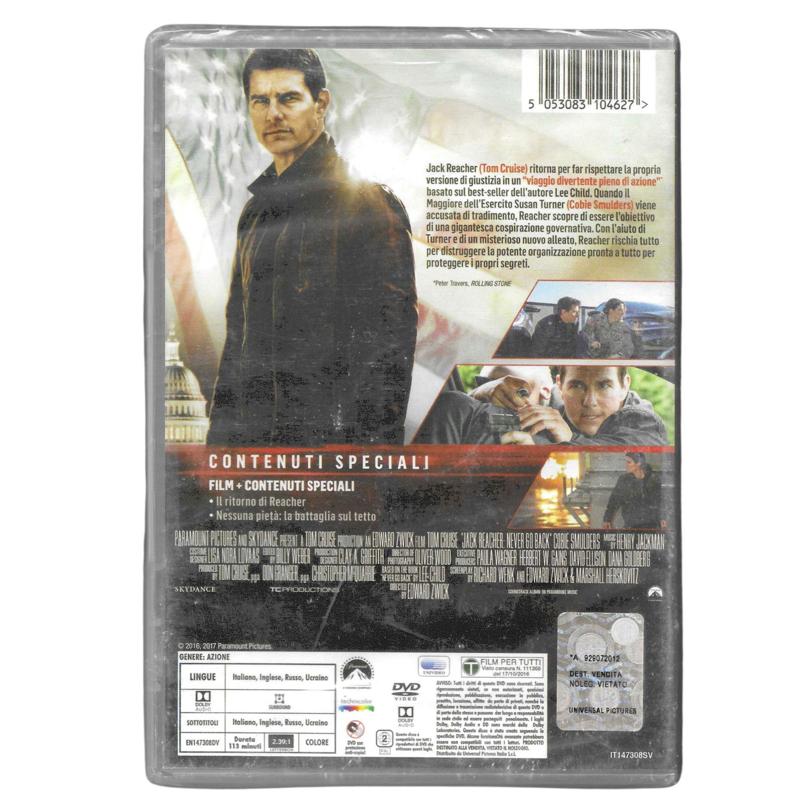 DVD "Jack Reacher - Punto di non ritorno" (2016) – NUOVO - TRD0112